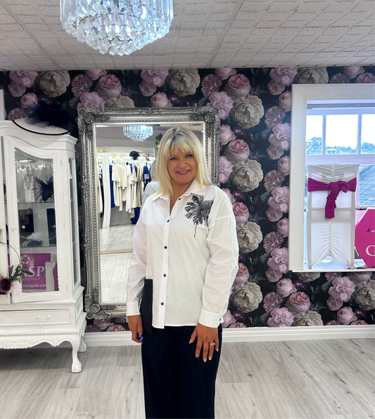 JOESPH RIBKOFF 253923 Stretch Poplin Button-Front Blouse with Zipper Accent in optic white
