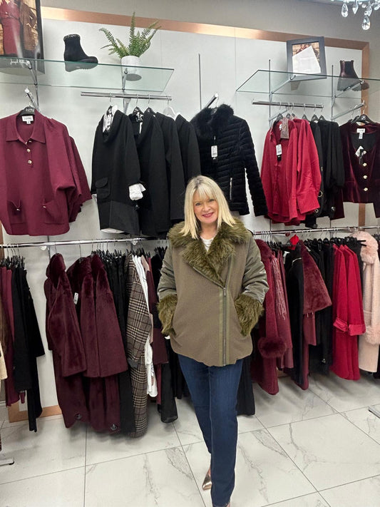 Micha Faux Fur 25667 Coat – Beige Snake Print