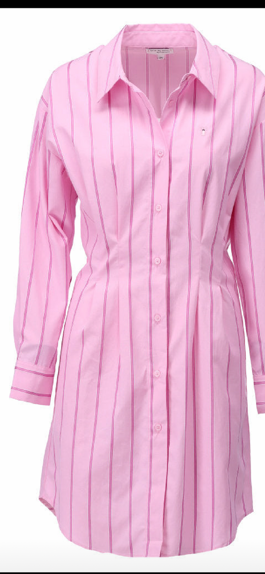 Cotton Stripe Print Fit and Flare Shirt Dress with Reversible Sash 261936