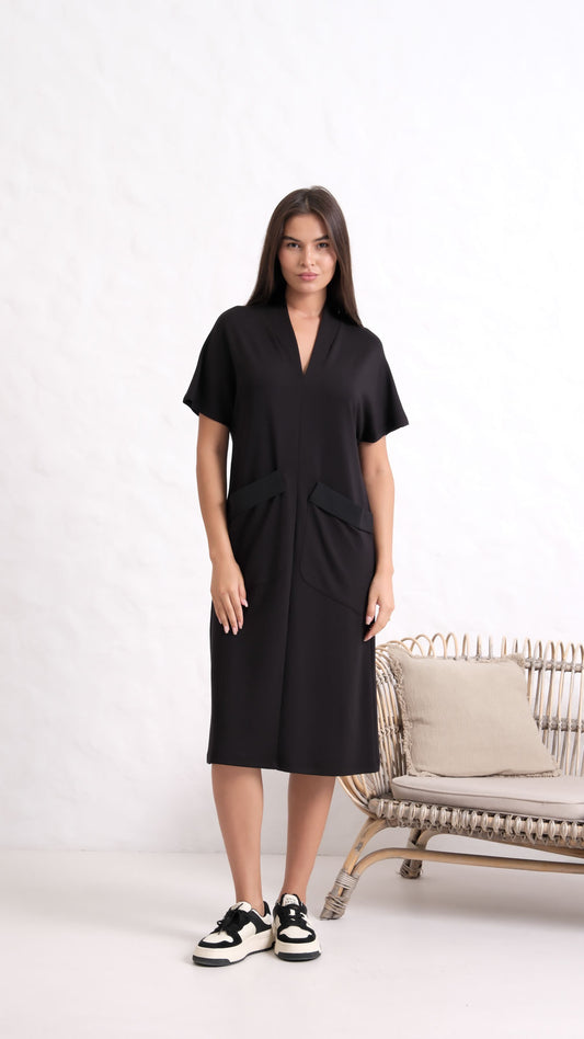 Pleated Scuba Crepe Straight Dress With Pockets Joseph Ribkoff 261252