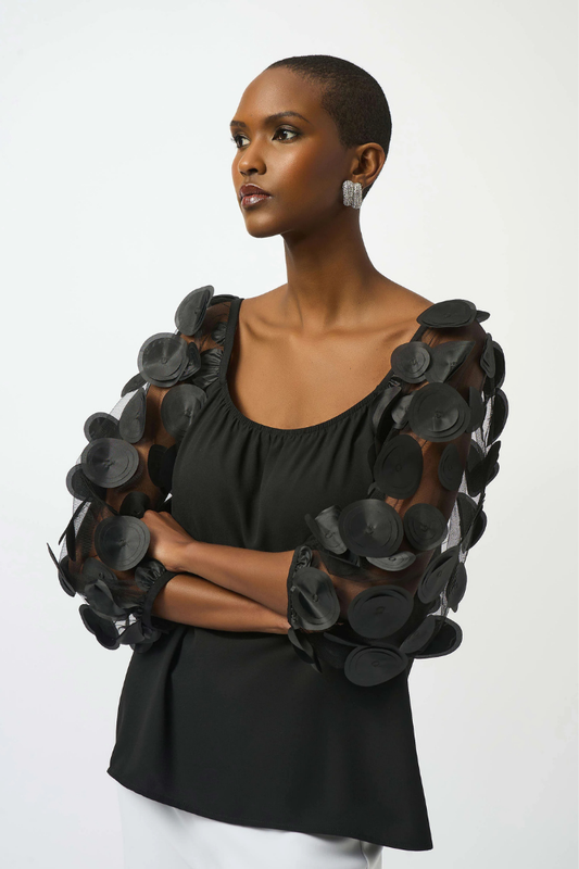 JOSEPH RIBKOFF SILKY KNIT TOP WITH 3D DOT SLEEVES 251273