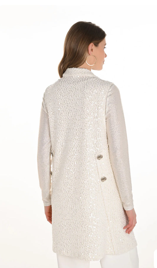 Frank Lyman Winter White Sequin Sleeveless Long Vest Style 254207