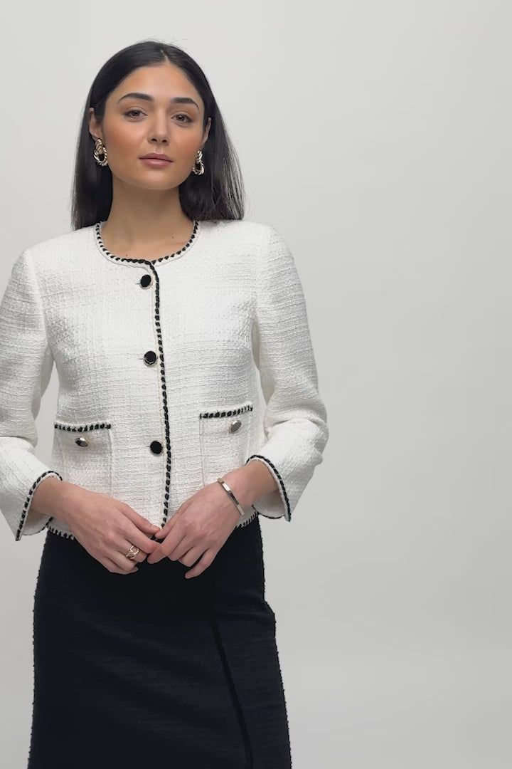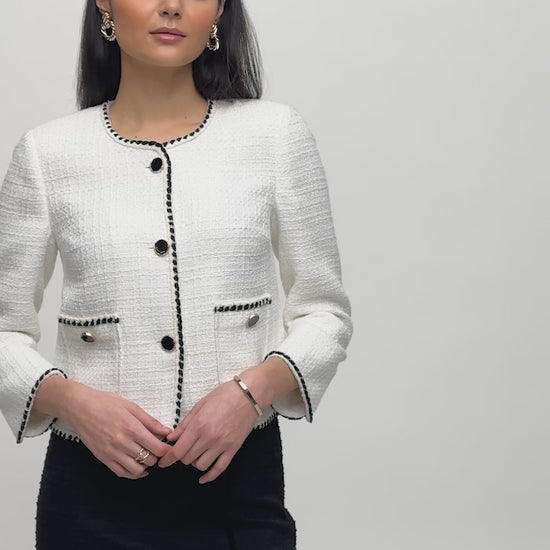 The boucle jacket is the perfect piece for adding texture and structure to your outfit.