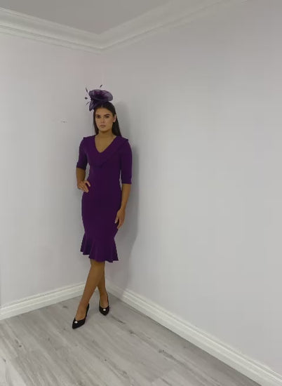 Beautiful elegant purple bodycon dress with 3/4 sleeve.