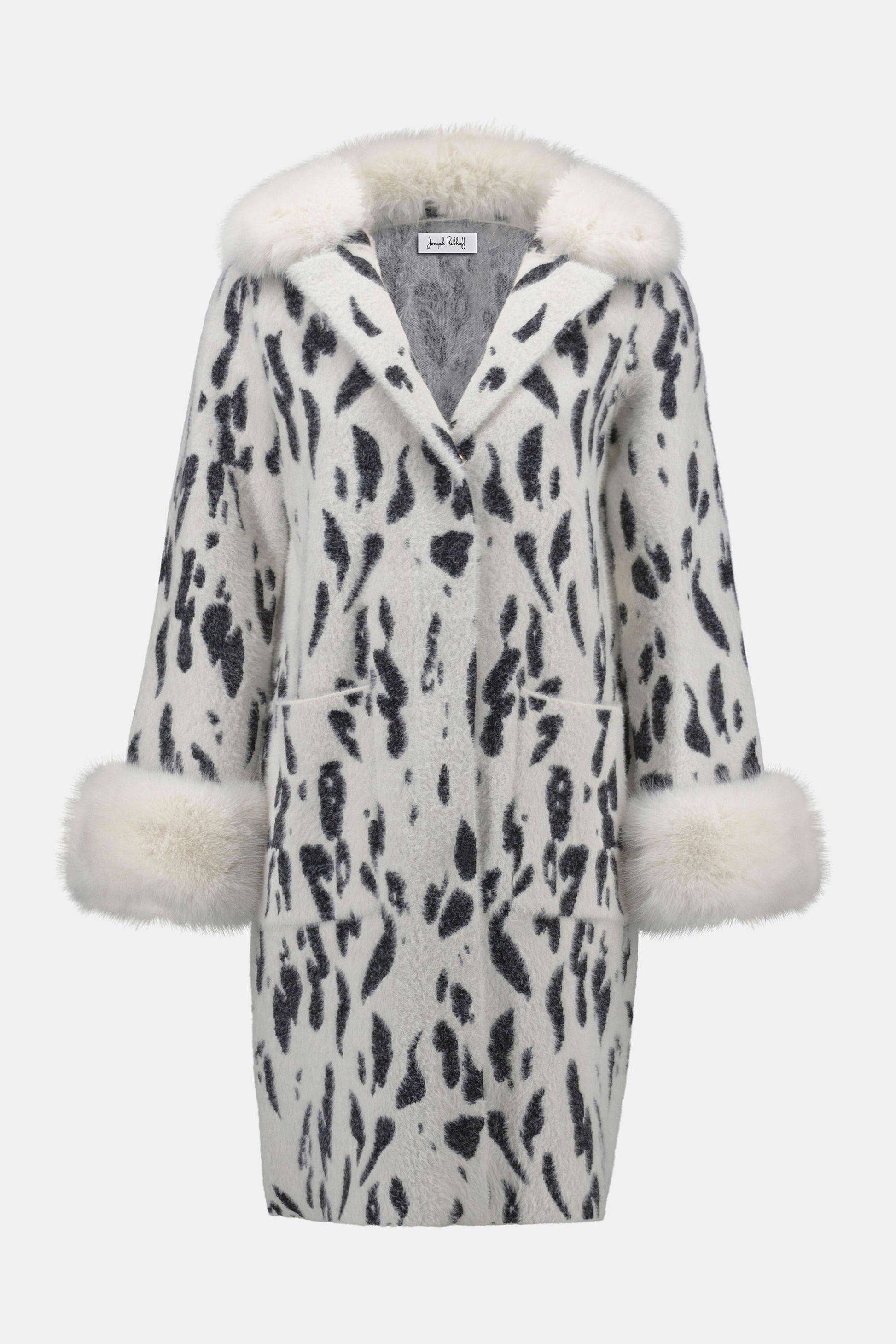 Feather Yarn by Animal Jacquard Coat with Faux Fur Trim 253904