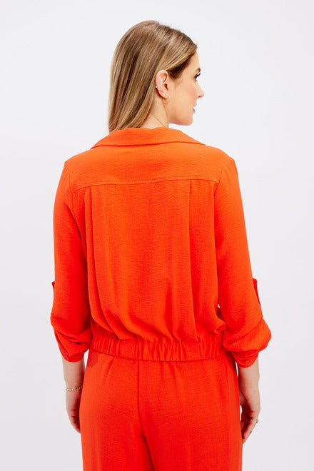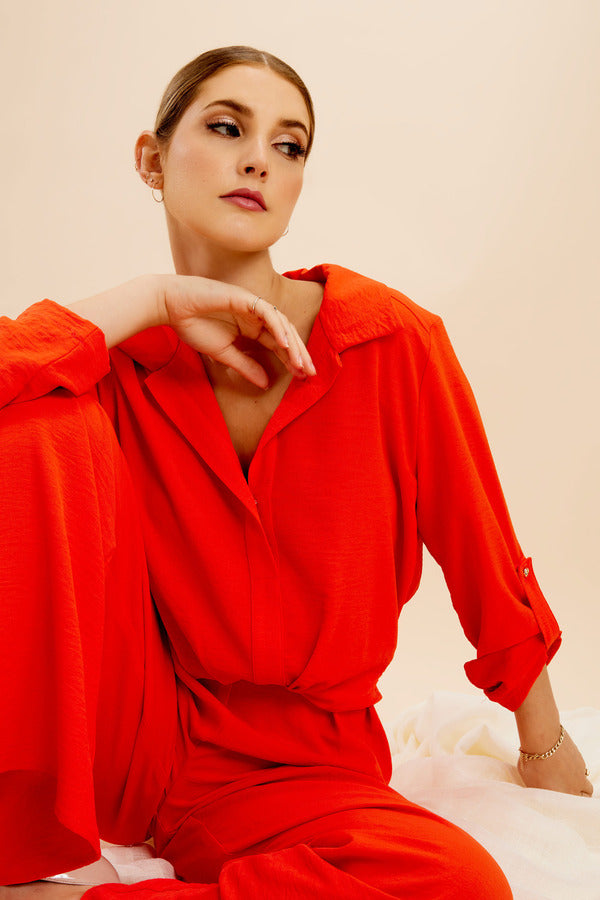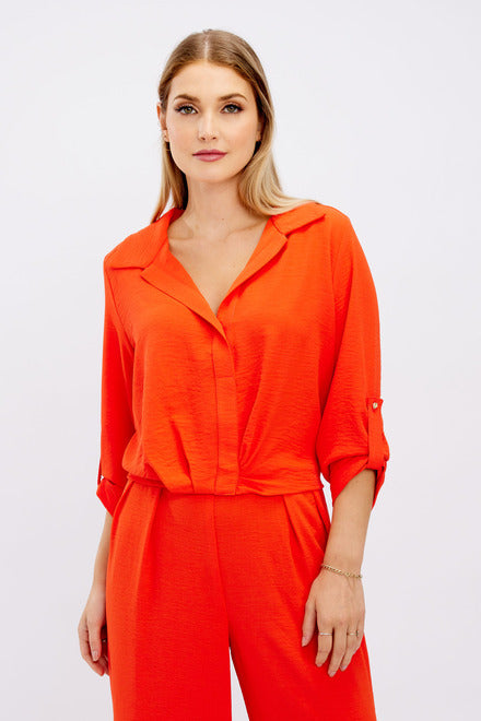 Stunning two piece trousers suit with buttons front opening on blouse.
