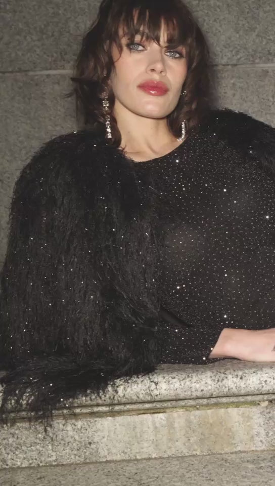 Add a touch of sparkle to your occasionwear collection with the Frank Lyman 259260 dress, made from a luxurious black and silver glitter Lurex fabric. This eye-catching piece offers a flattering fitted shape with subtle stretch for comfort and ease of movement. Designed with a classic round neckline and elegant three-quarter sleeves, it’s the ideal choice for evening events, winter weddings, or your next Christmas party outfit.