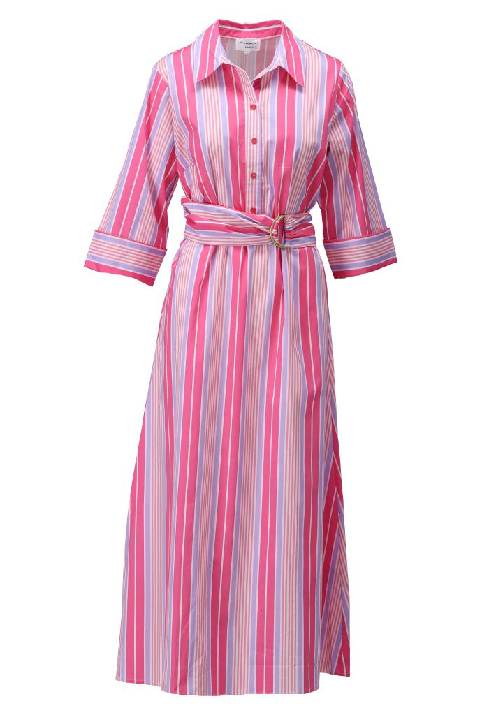 Bright, feminine and effortlessly stylish — this stunning K Design shirt dress is the perfect piece to elevate your everyday wardrobe. Featuring a beautiful mix of pink, blush and white vertical stripes, it creates a flattering, elongating silhouette while adding a fresh pop of colour.