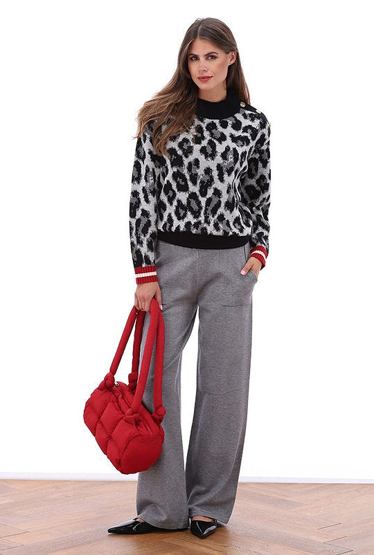 This delightfully wild K-Design sweater features a trendy leopard print with a modern touch thanks to the bold buttons on the shoulder. Made from a soft, stretchy acrylic and wool blend, this sweater offers a comfortable fit that's ideal for any occasion. The knitted neckline and sporty red details on the sleeves add a playful touch to your outfit. NOTE! This trendy sweater.