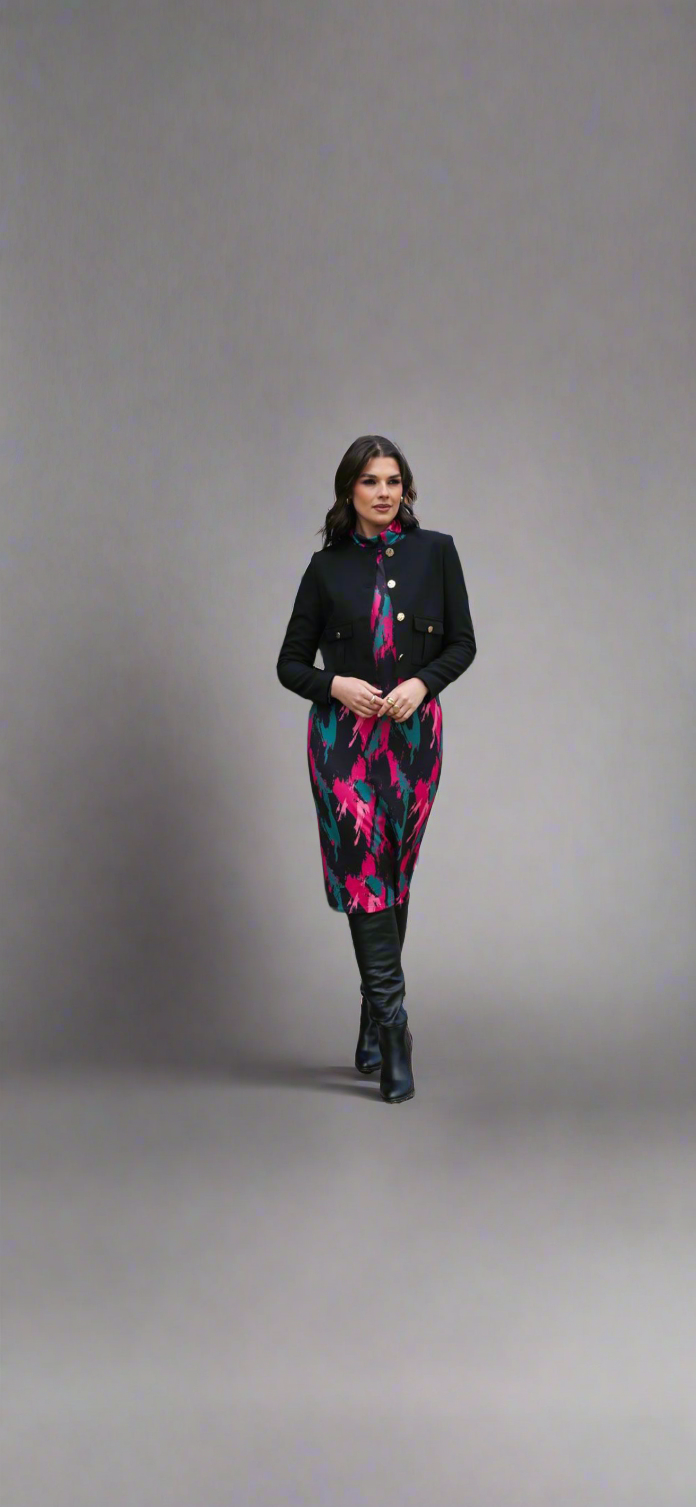 Stunning long soft knit type fabric in longer length, perfect for tights and boots or a day to night occasion.