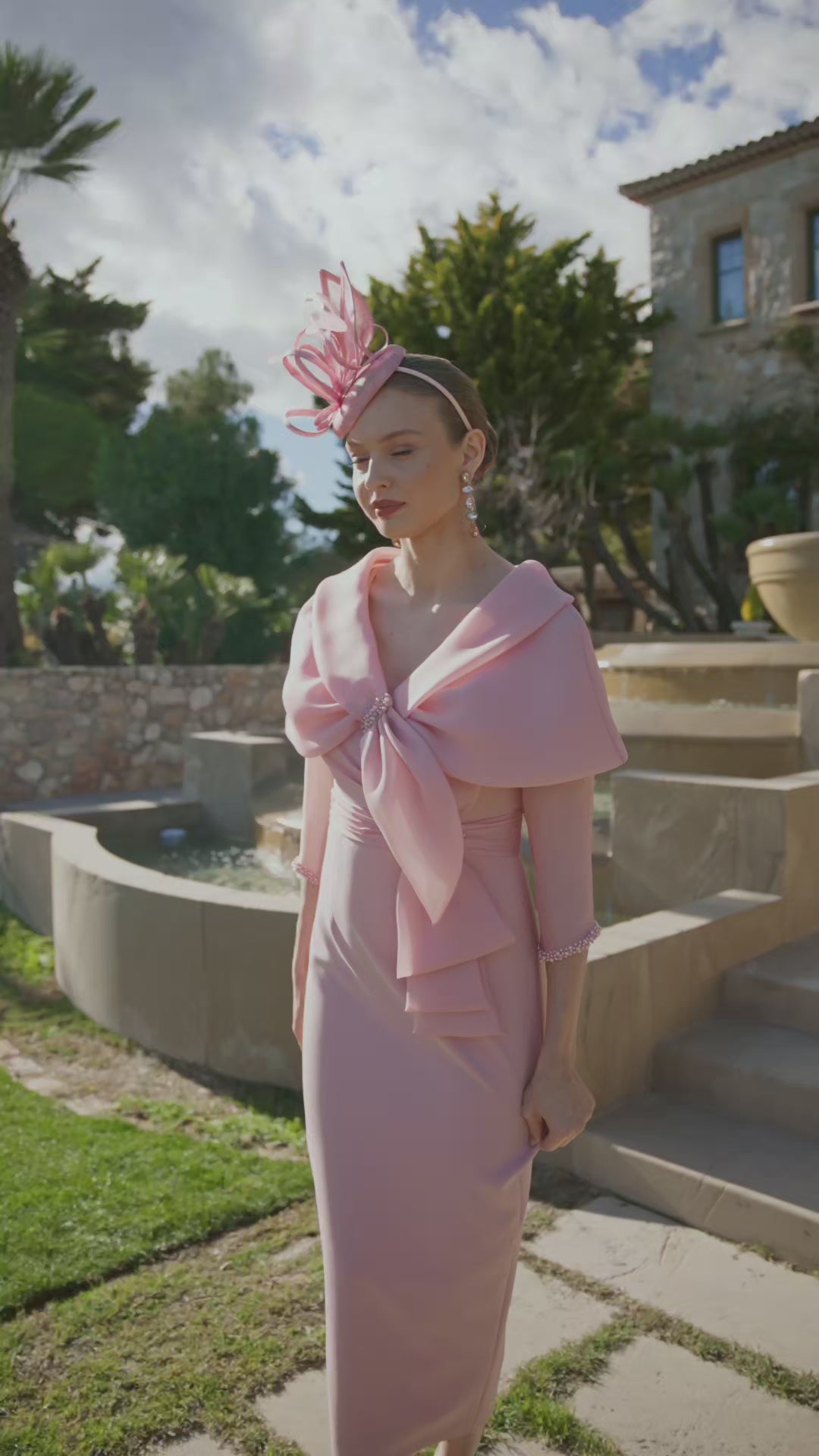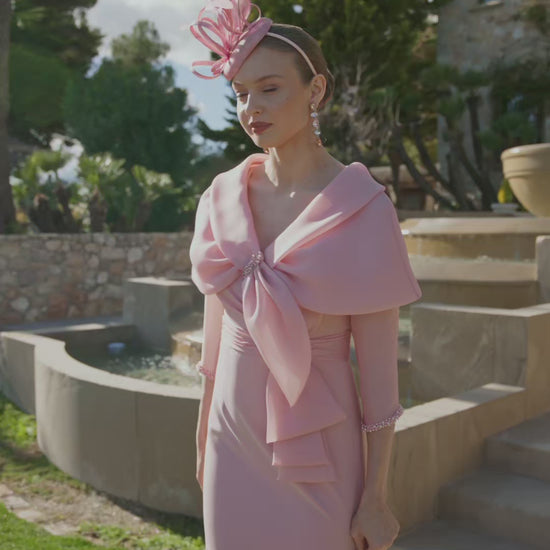 Mother of the bride and groom/special occasion.Spft pink dress with cape .
