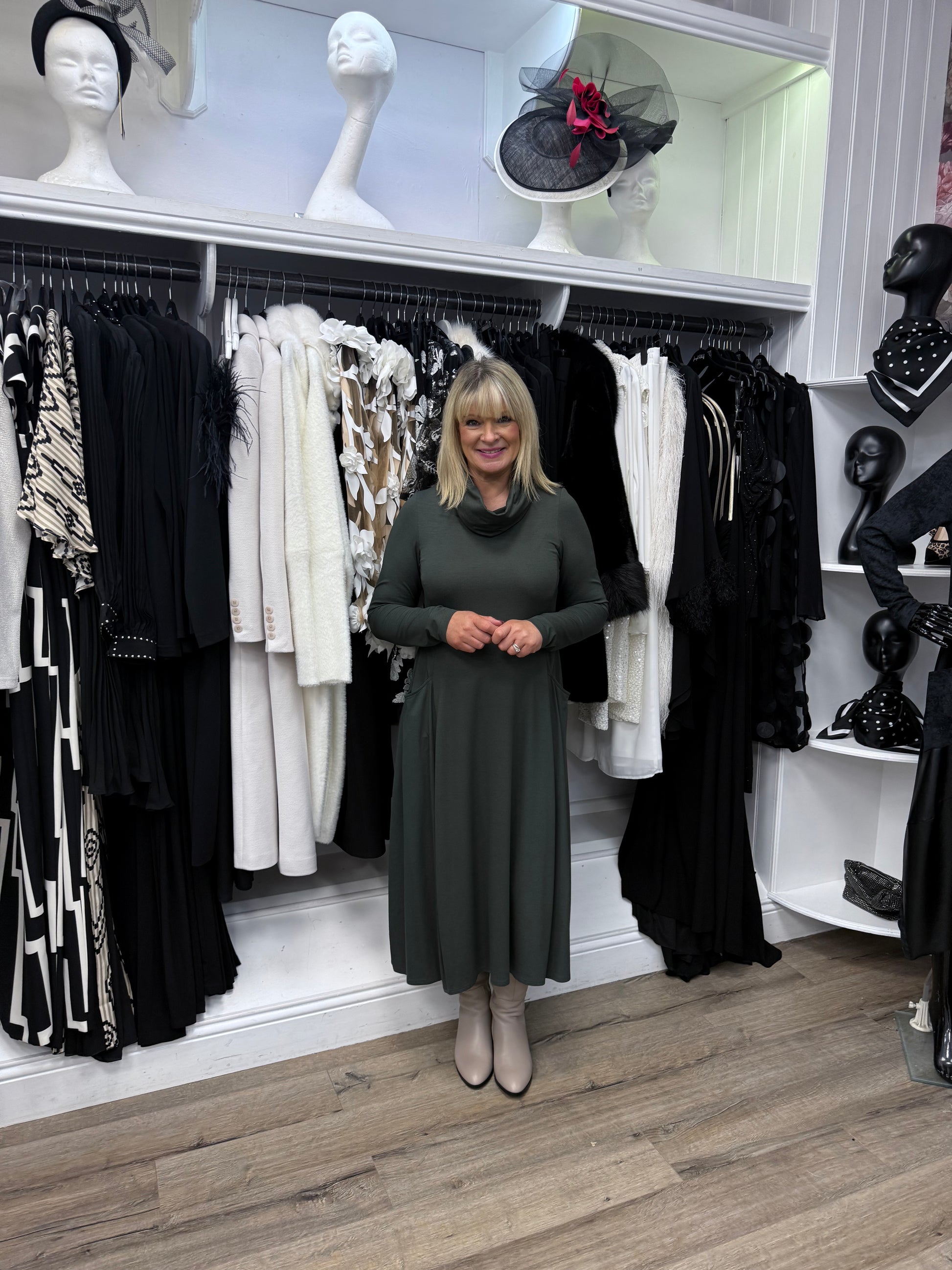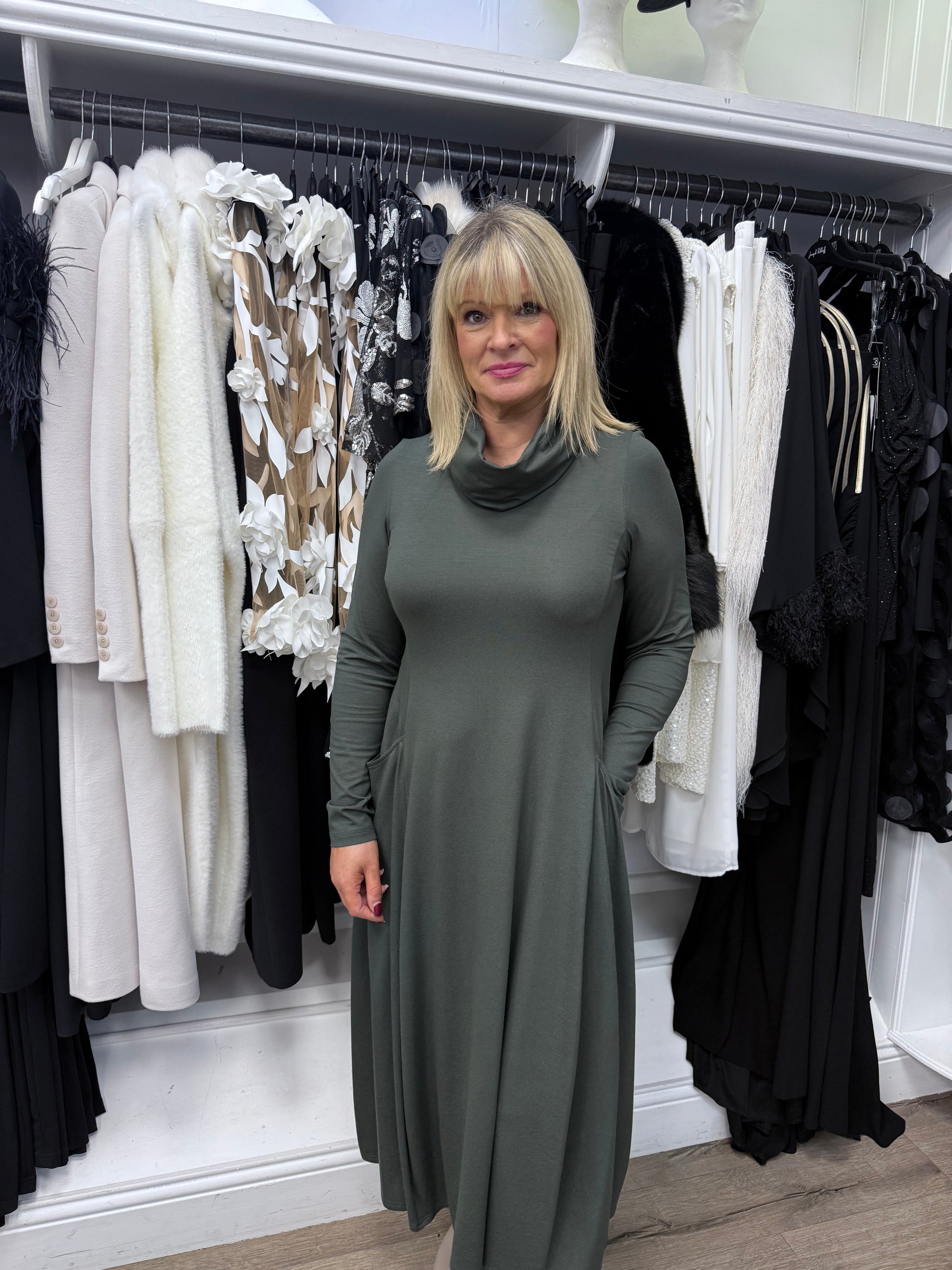 Effortless, flattering and chic – the Noen Cowl Neck Dress is a wardrobe essential for style and comfort. Crafted in a soft draping jersey, it falls in a relaxed A-line silhouette that flatters all shapes. The elegant cowl neckline and long sleeves make it perfect for layering, while side pockets bring practicality to everyday elegance.