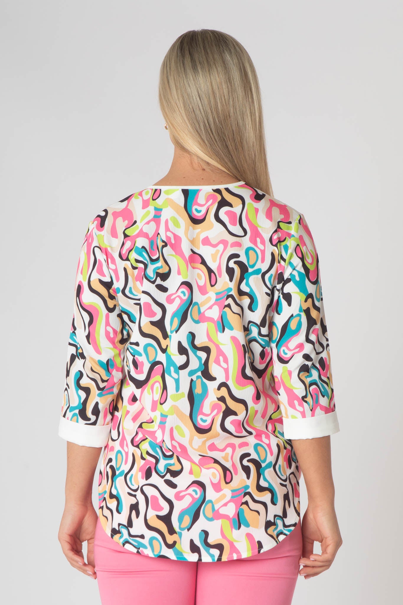 This vibrant Paige v neck top with white trim is a must have addition to your wardrobe, featuring a low h,it effortlessly combines style and comfort..