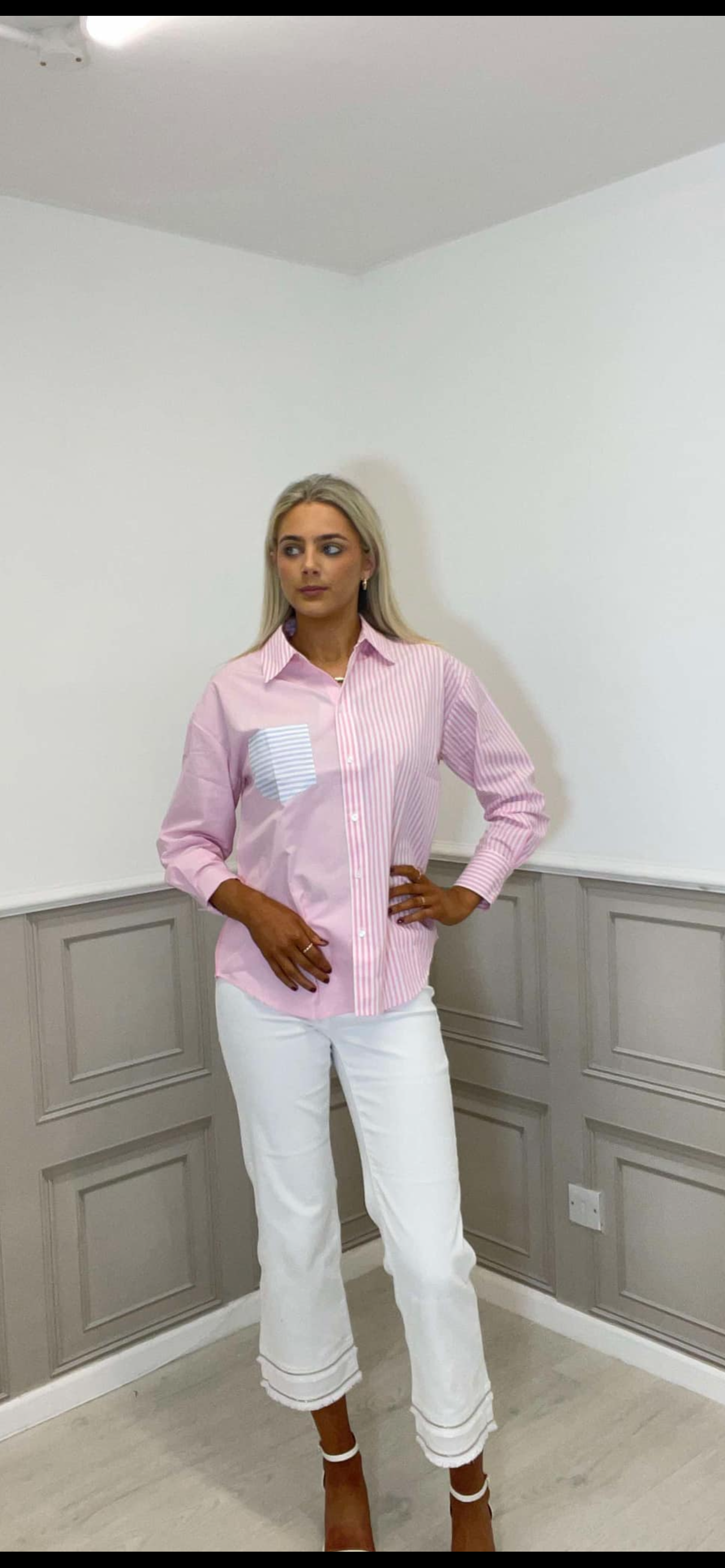 This beautiful pink stripe shirt complete with a pop of colour with the Blue Pocket Detail. this shirt will add a touch of style for your summer wardrobe..