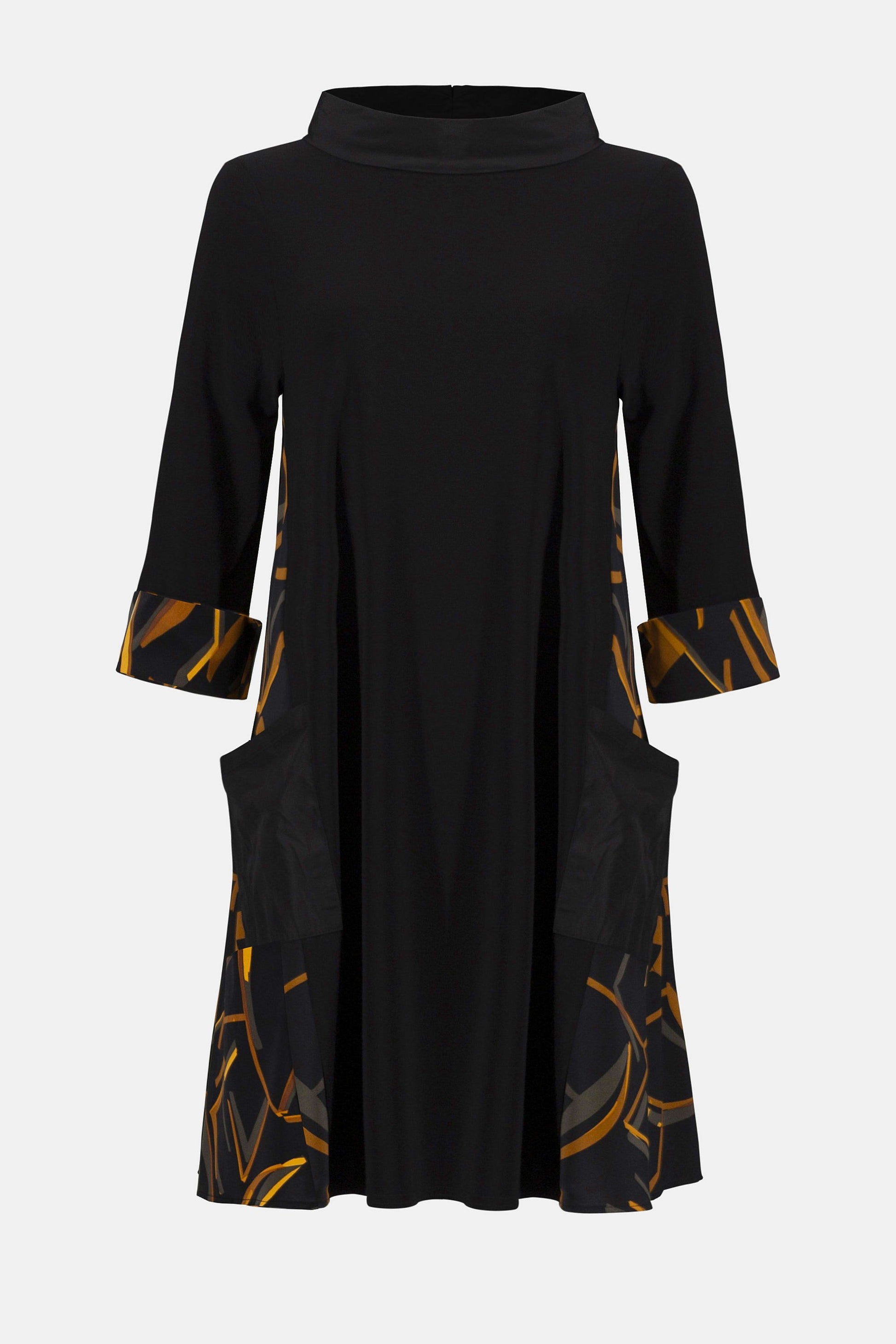 This lovely dress brings together recycled woven, silky knit and memory fabrics with an abstract print to create an alluring yet harmonious design. The A-line silhouette, enhanced by a structured funnel collar and three-quarter cuffed sleeves, offers a graceful and confident look…