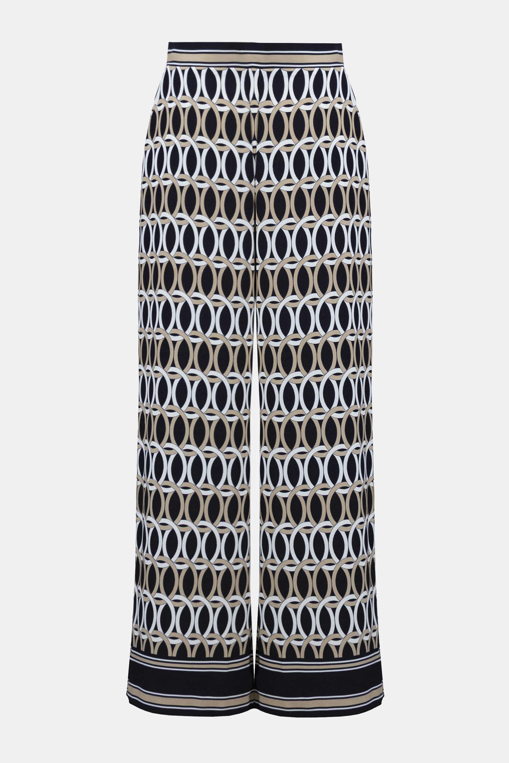 Sophisticated with a statement edge, these recycled woven pants feature a bold status chain border print, side pockets, and a comfortable shirred elastic waistband at the back.
