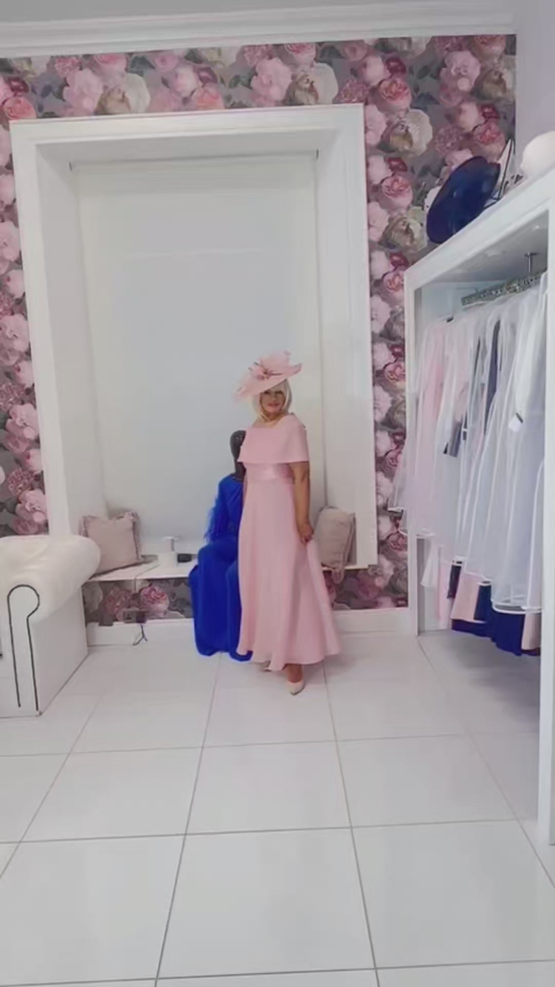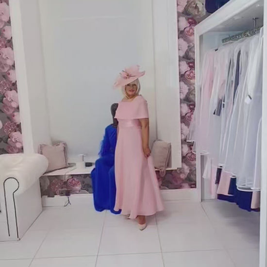 Soft pink A-line dress with back bow detailing. Mother of the bride/groom/special occasion