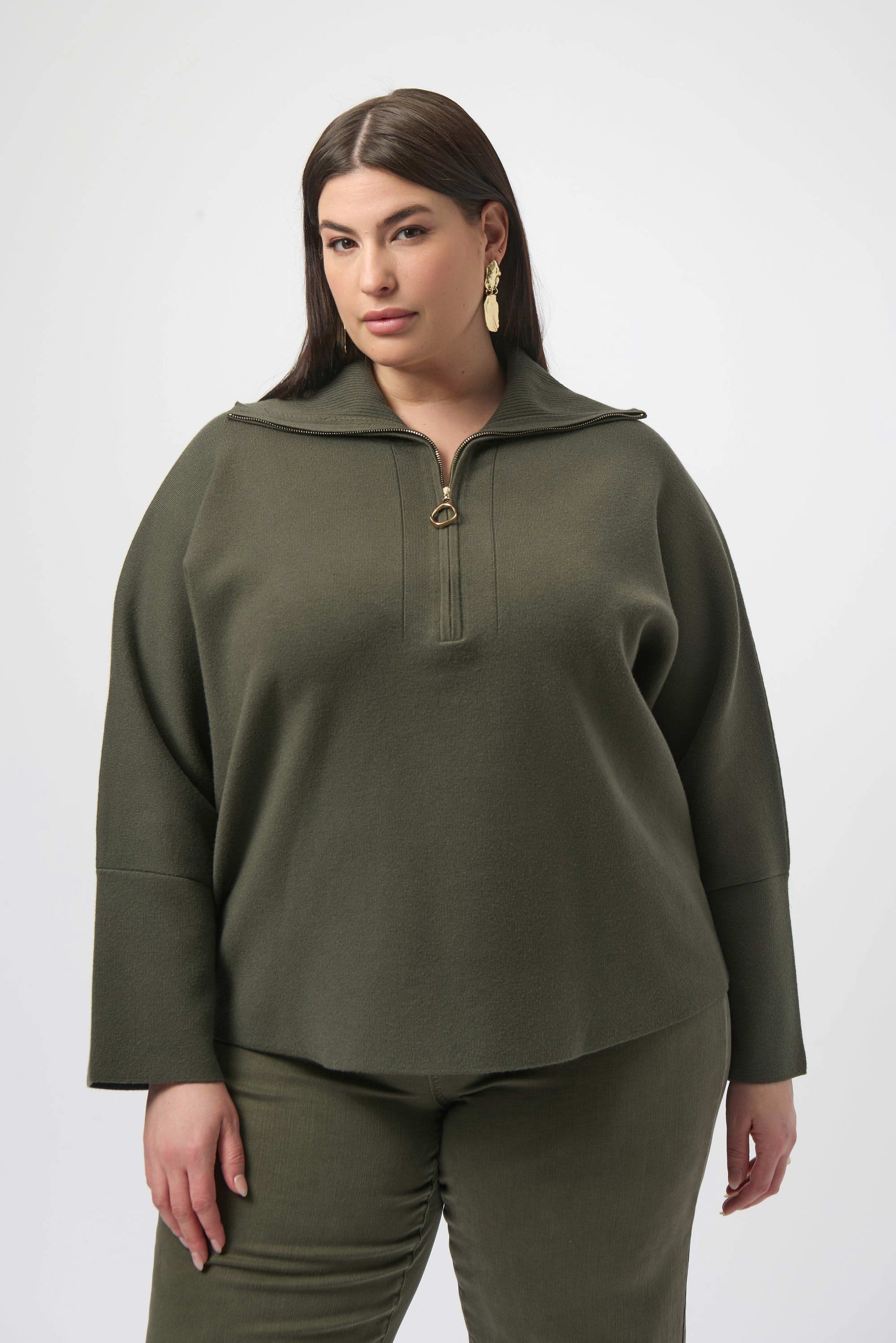 Sweater Knit Boxy Pullover With Zipped Collar 253963