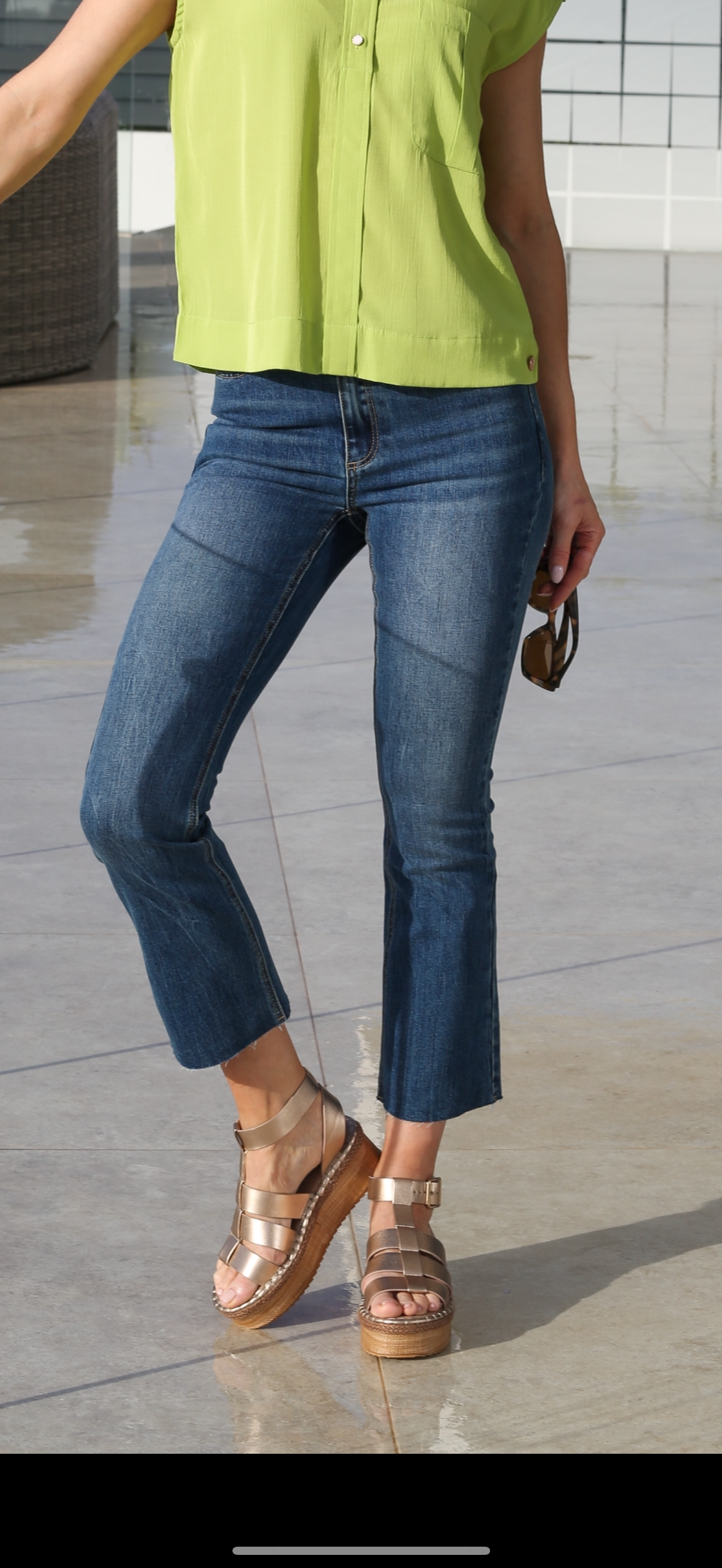 The perfect summer cropped flare in a stylish midwash,mix and match with all your summer style .
